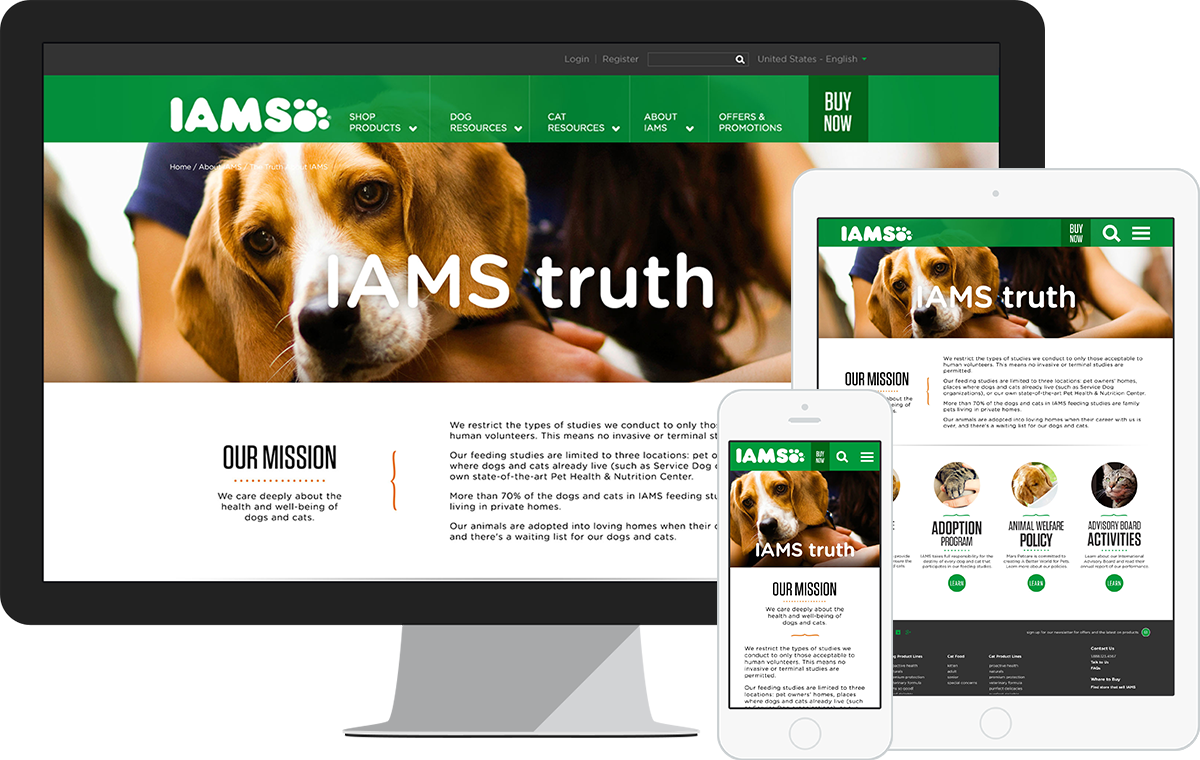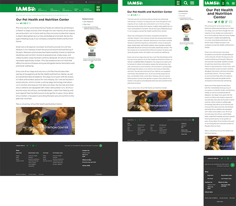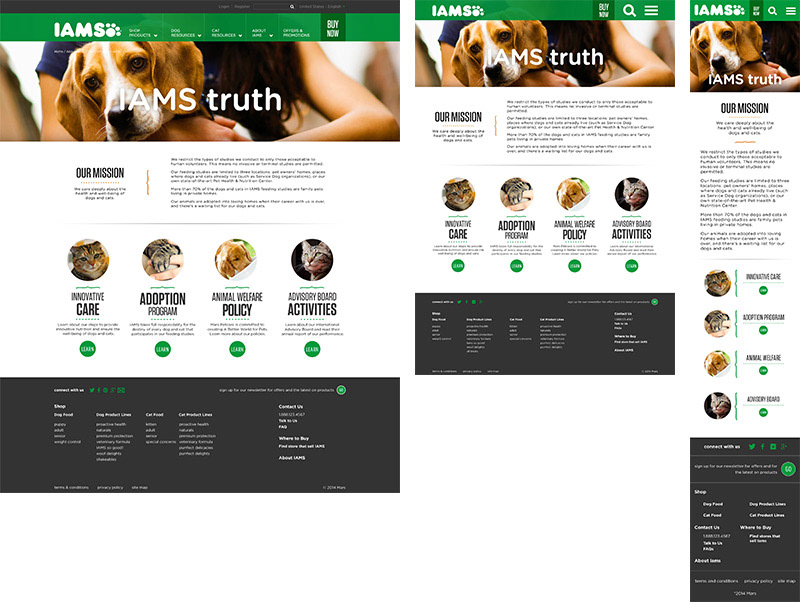 While contracting at POSSIBLE, I helped out on the IAMS website primarily by slicing images for development. However, I did own the design of a section of the site called "IAMS Truth."